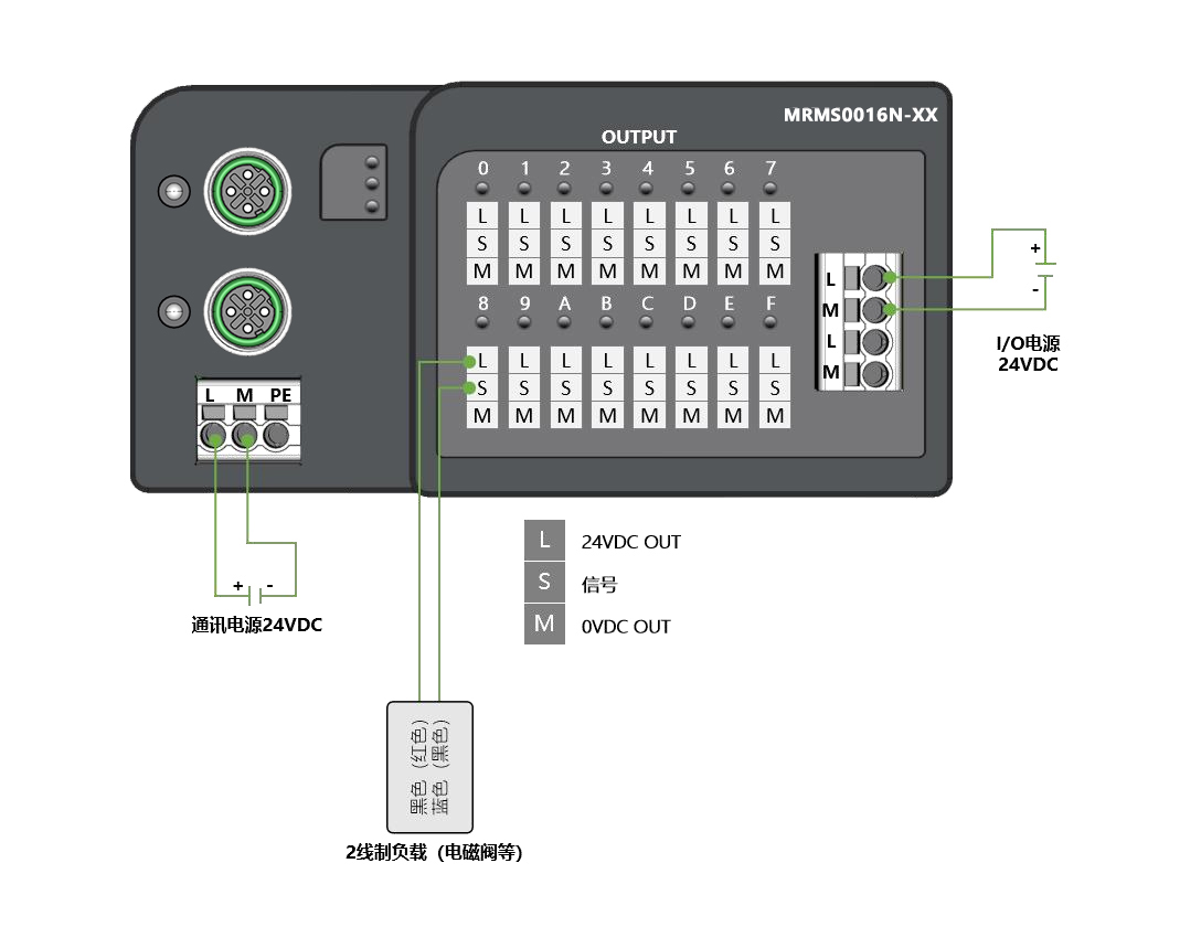 面板式快接线分布式I/O,EtherCAT通讯,2xM12,可级联;数字量16出 NPN,24VDC,0.5A,欧式弹簧端子;导轨安装&打孔安装(下单时需备注)